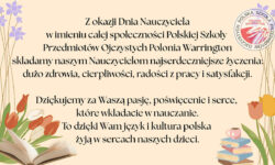Z okazji Dnia Nauczyciela otrzymaliśmy piękne słowa od Pani Elżbiety Barrass z Polskiej Macierzy Szkolnej w Londynie, wyrażające wdzięczność i uznanie dla wszystkich nauczycieli polonijnych. To wyjątkowe przypomnienie, jak ważna i potrzebna jest nasza wspólna praca – wychowywanie młodego pokolenia w miłości do języka polskiego, kultury i tradycji.Serdecznie dziękujemy Pani…