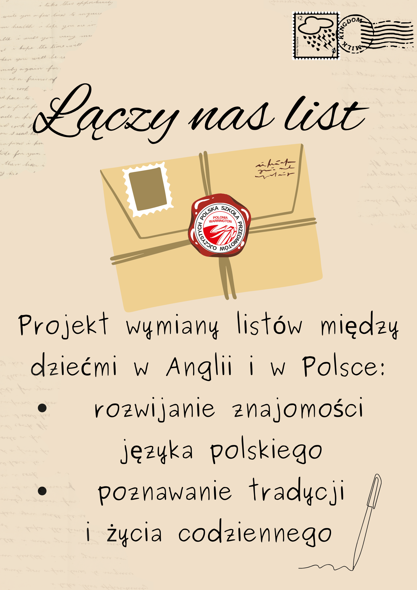 Z radością informujemy, że w naszej szkole rusza wyjątkowy projekt „Łączy nas list”. To projekt, który łączy dzieci polonijne w Wielkiej Brytanii z ich rówieśnikami w Polsce.