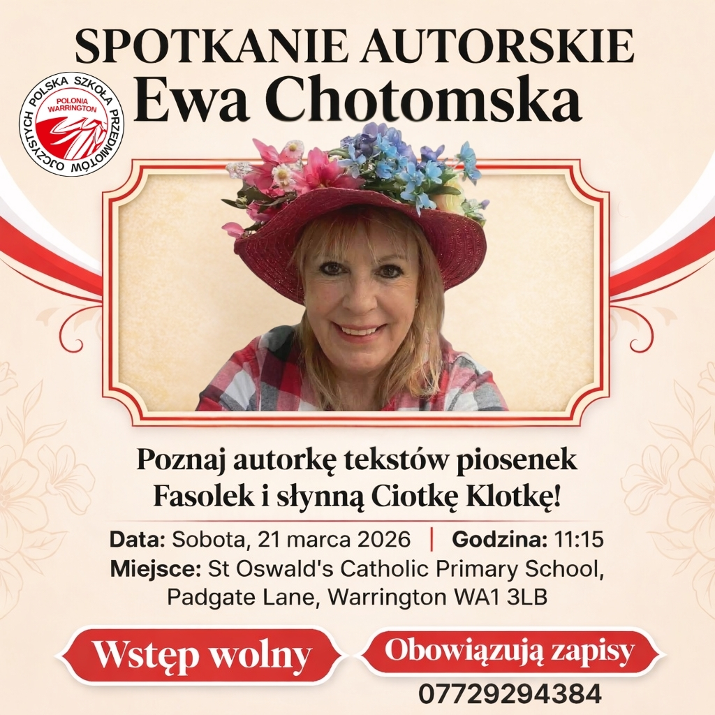 Pani Ewa Chotomska jest znana wielu pokoleniom jako Ciotka Klotka z kultowego programu dla dzieci „Tik‑Tak”. Jest autorką książek dla dzieci oraz tekstów piosenek zespołu Fasolki, które od lat stanowią ważną część polskiej kultury dziecięcej.