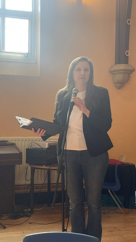 - pani Izabella Hockenhull zaprezentowała wiersz „Gdyby tygrysy jadły irysy” – jej interpretacja była pełna lekkości, humoru i scenicznej swobody, dzięki czemu publiczność reagowała uśmiechem i żywym zainteresowaniem.