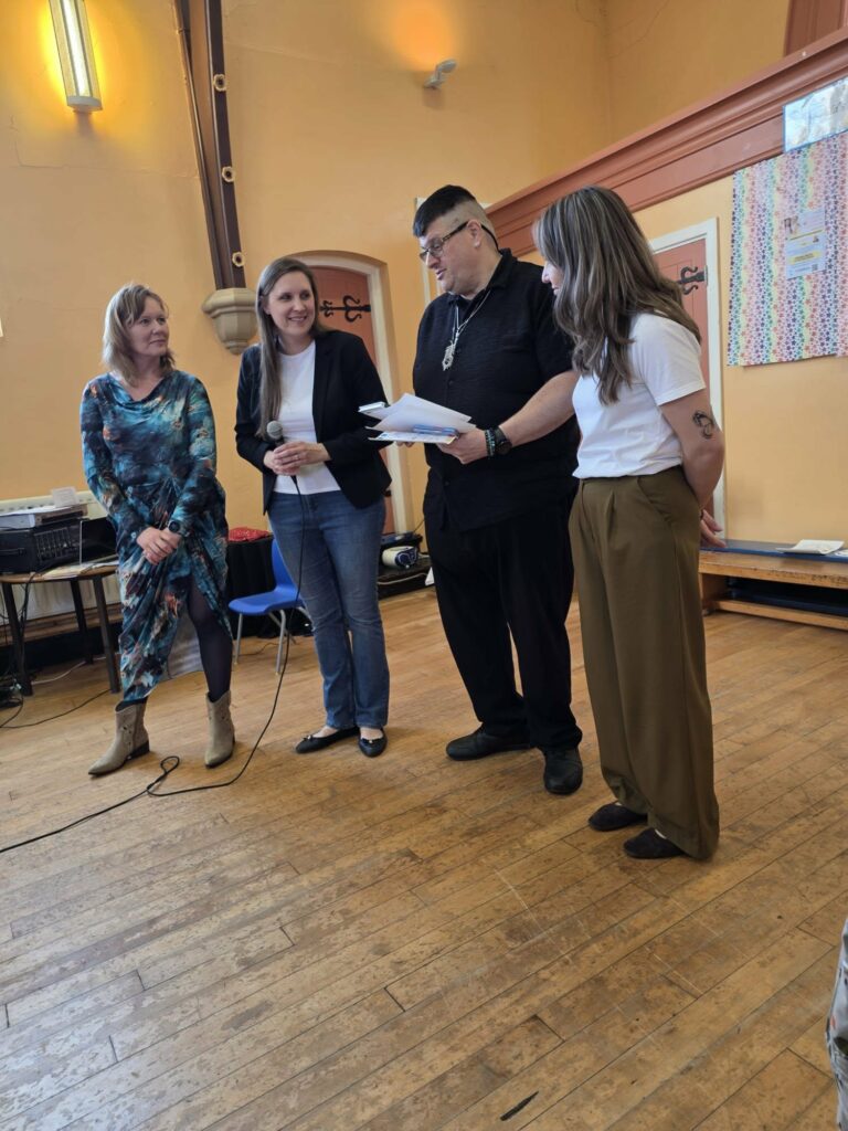 Podzieliliśmy się także fragmentem naszej działalności, prezentując jeden z odcinków projektu – nagranie, w którym pani Alicja Janosz czyta utwór „Łyżka”. Był to dla nas wyjątkowy moment, który pięknie połączył naszą codzienną pracę z tym niezwykłym spotkaniem.